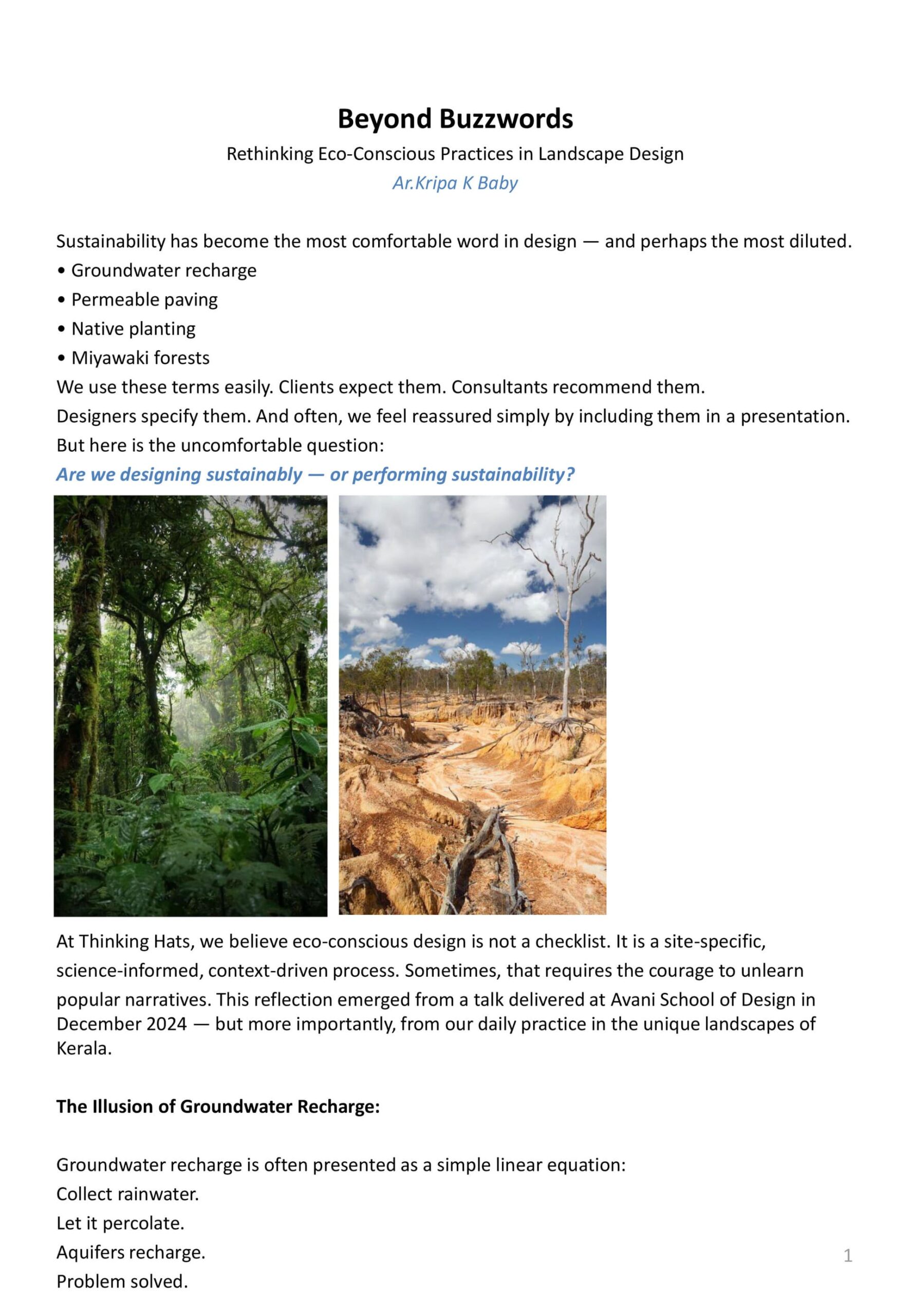 Beyond buzzwords-Rethinking Eco-Conscious Practices in Landscape Design February 7, 2026 with no comment Uncategorized Previous Post Presenting Thinking Hats at IIA KERALA Chapter State Convention – ‘KALAASHAM 2025’ Next Post Featured in Journal of the Indian Institute of Architects JIIA-March 2025