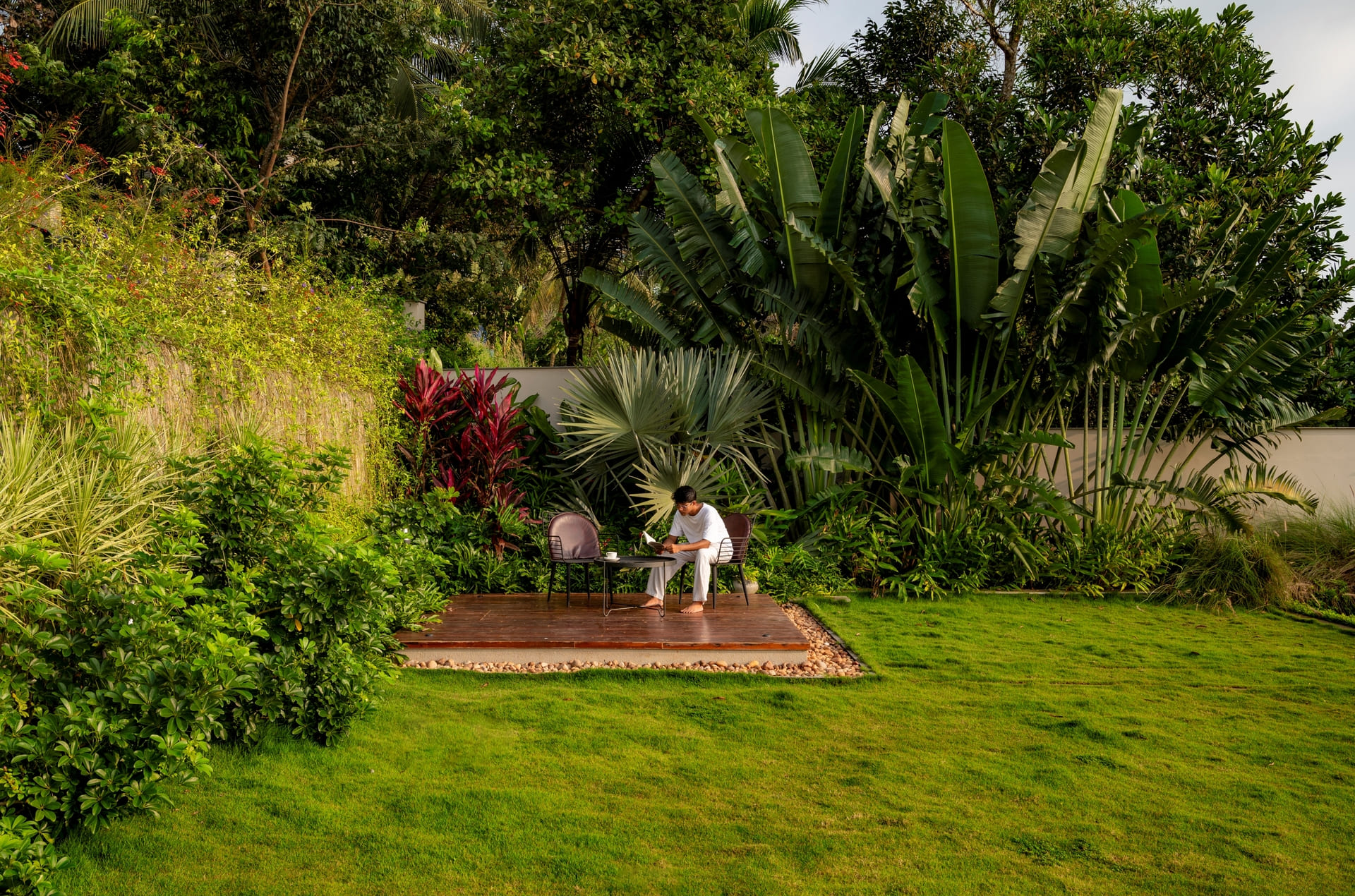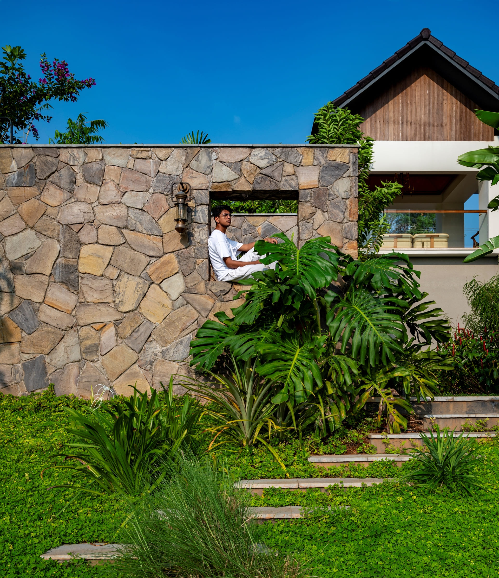 Wind Charmers Court is a 0.5-acre terrain-responsive residential landscape in Perashannur, Malappuram, shaped by a natural 10-meter level difference and oriented toward views of the Nila River. Rather than altering the land, the design works with existing contours, minimizing disturbance while creating a series of connected outdoor spaces that respond to wind, topography, and microclimate. The landscape is conceived as a fluid sequence of levels, framing views and capturing prevailing breezes to enhance spatial experience.